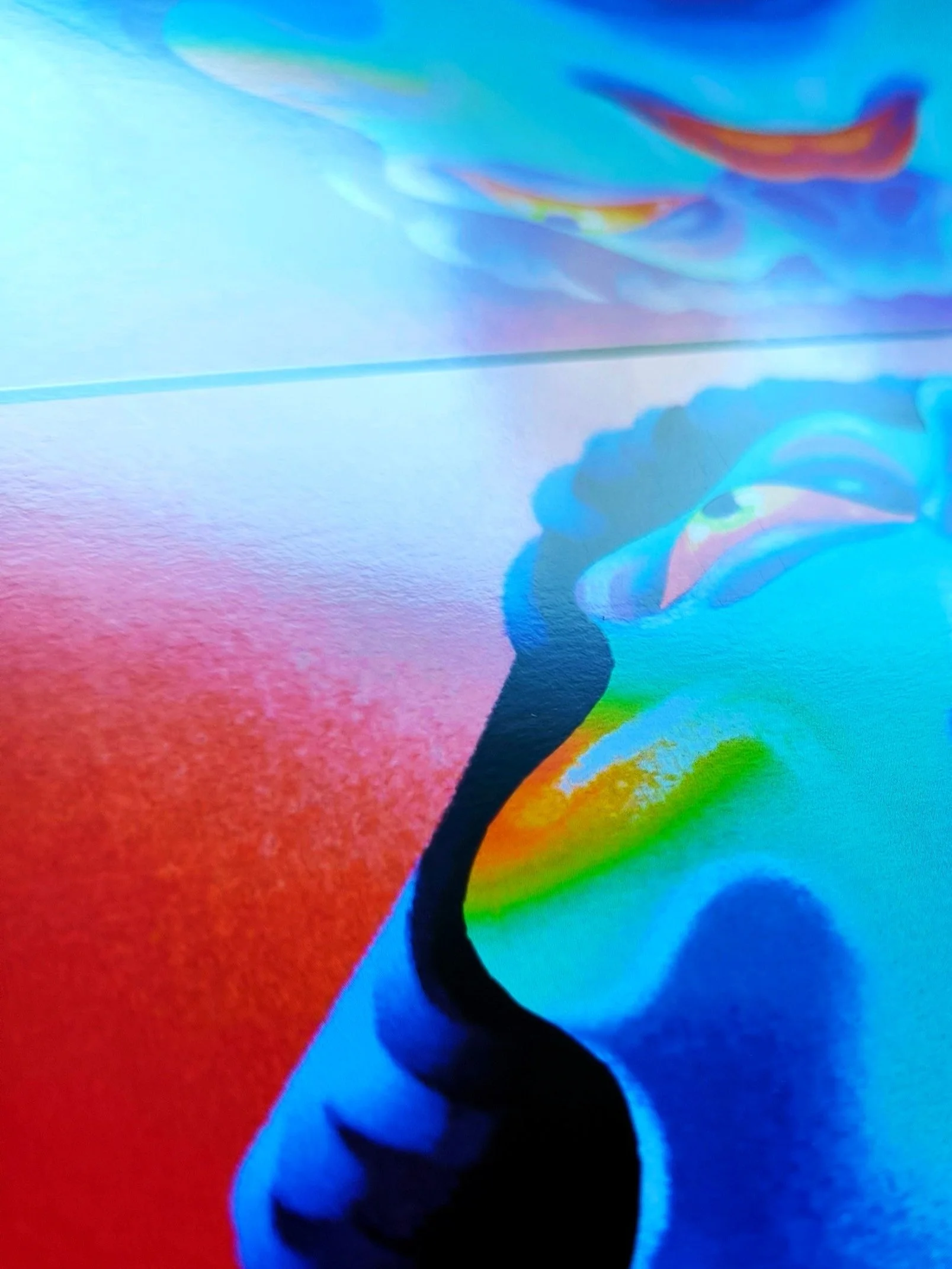 Ce papier, grâce à son haut grammage, détient une bonne rigidité qui prévient les froissements. Son fini brillant et sa texture lisse sont idéals pour les dégradés et contrastes de mon univers visuel, offrant des noirs profonds et des points clairs éclatants.